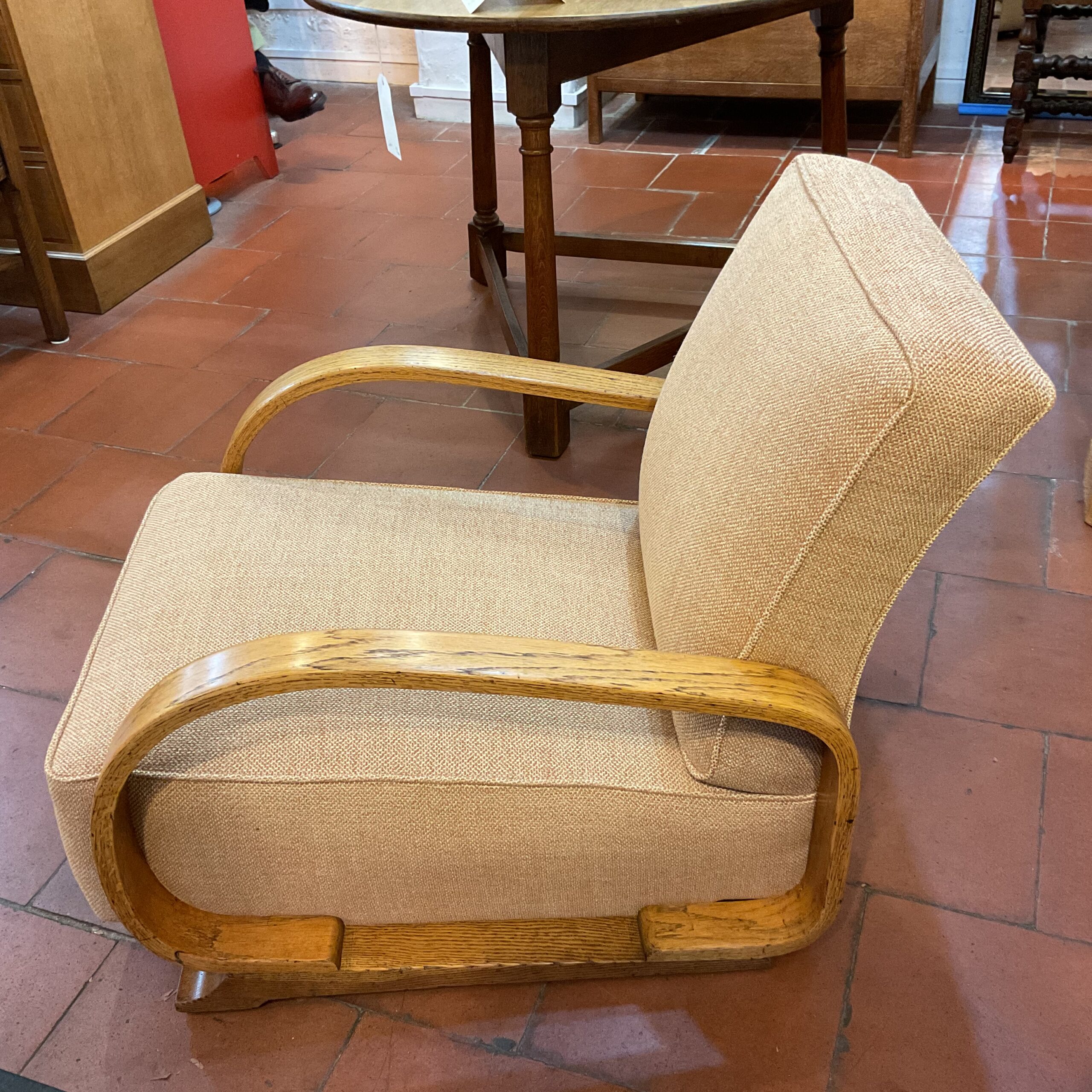 Heals and son open arm chair circa 1930’s reupholstered