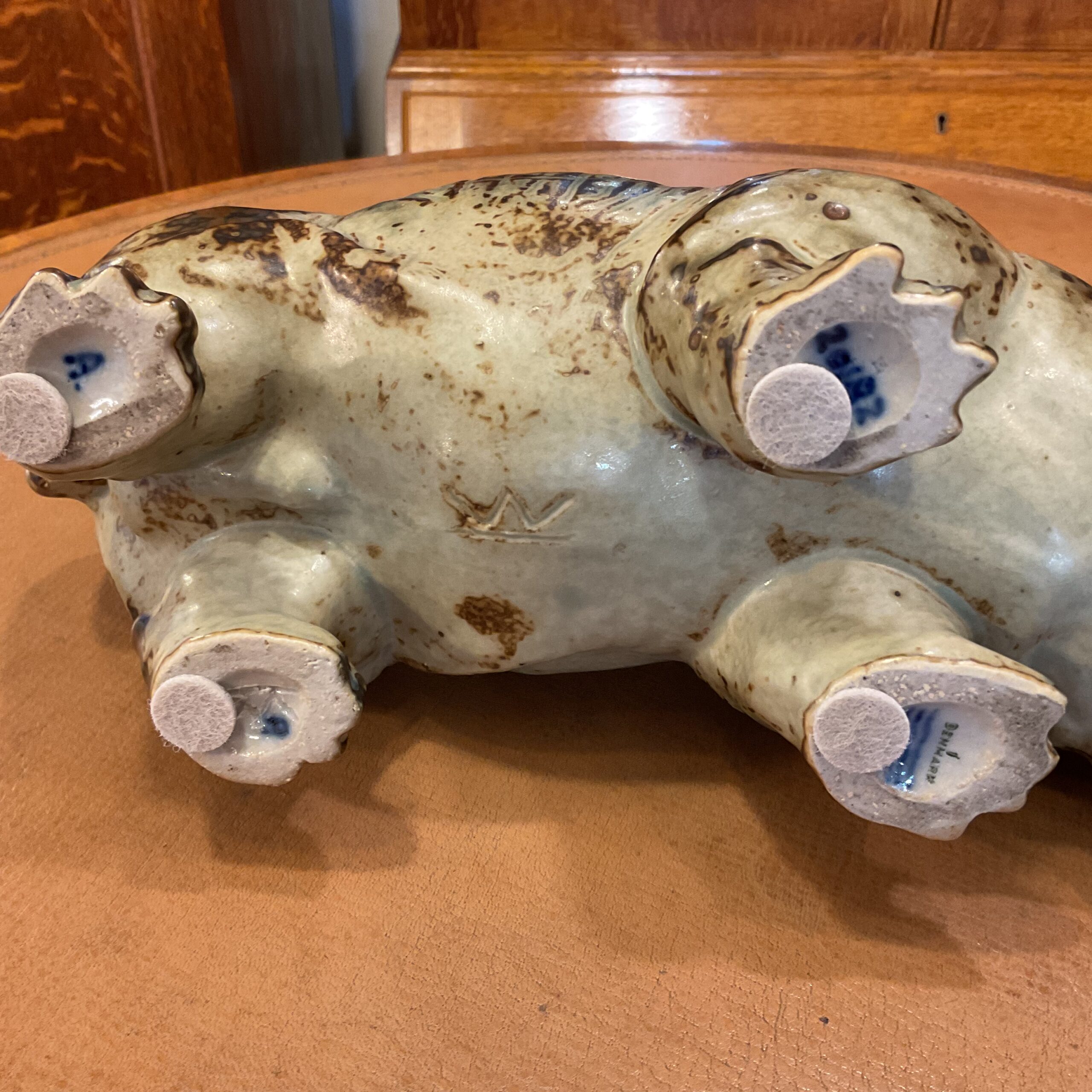 He worked at the Royal Copenhagen factory off and on during the 20th century. Studying animal at the zoo his animal figures are very lifelike with many expressive features. The iron rich glaze ‘sung’ is fired once only producing an interesting mottled effect.