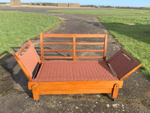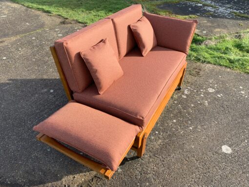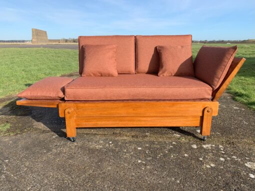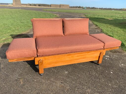 This very practical Bed-Settee was manufactured by Parker-knoll with a patented design. The frame is solid oak and retailed by Heals.